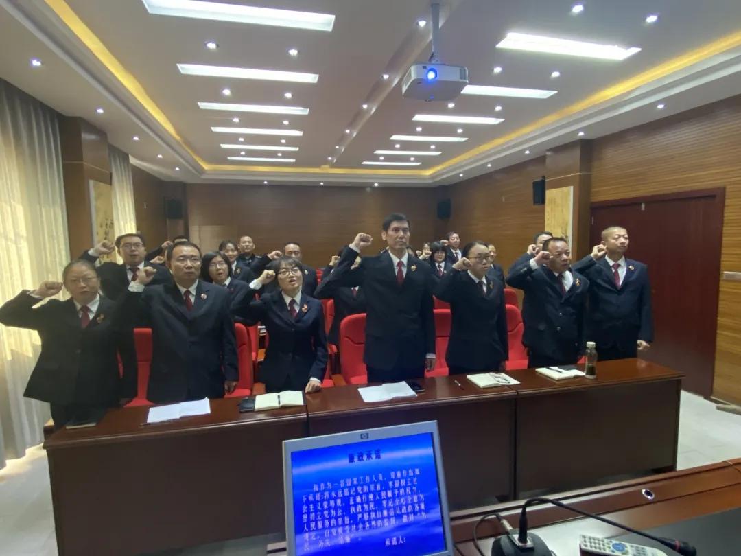 最后,由党组书记、检察长李世雄领誓,全院干警右手握拳高举,进行廉洁承诺,一声声承诺坚毅有力,无不体现着干警们廉洁自律,严以修身的决心。