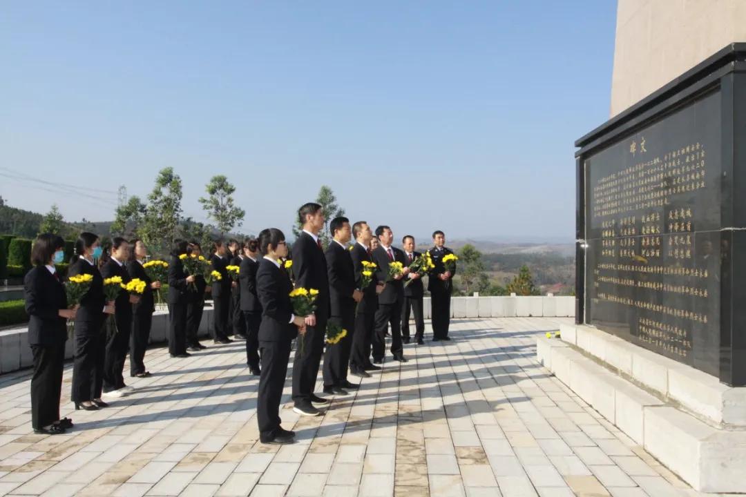 全体检察干警站在庄严的革命烈士纪念碑前,在悲壮的哀乐中,向革命烈士敬献花圈和鲜花,并默哀三分钟以寄托对革命先烈的无限哀思。