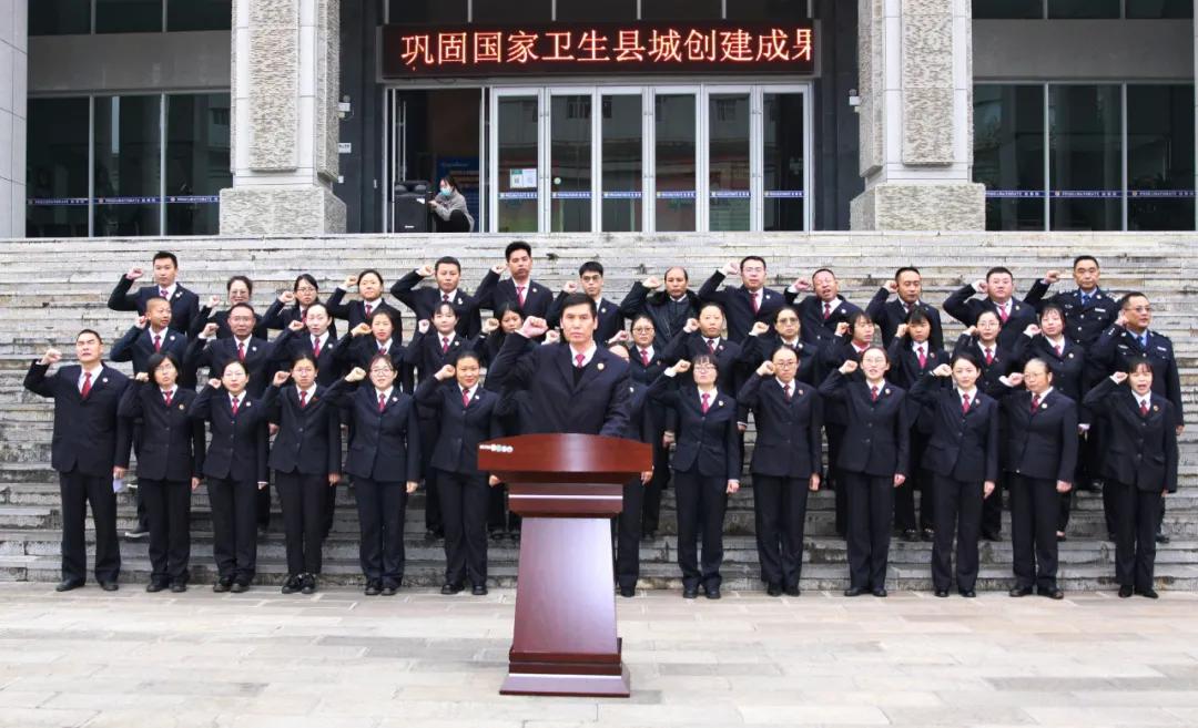 党组书记、检察长李世雄带领全体干警进行宪法宣誓:“忠于中华人民共和国宪法,维护宪法权威,履行法定职责,忠于祖国、忠于人民,恪尽职守、廉洁奉公,接受人民监督,为建设富强民主文明和谐美丽的社会主义现代化强国努力奋斗!”