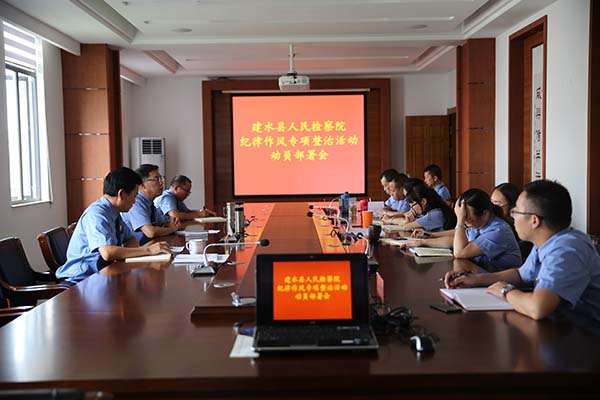 陈勇检察长动员部署时提出三点要求:一是要发挥关键少数的雁头效应。班子成员、各部门负责人要强化思想自觉,深刻认识开展纪律作风专项整治活动的必要性、紧迫性和重要意义,把握专项整治活动的主要任务、方法步骤和工作要求,结合部门工作实际,在做好示范带头的同时,明确专人从严从实推进专项整治活动,确保活动取得实实在在的成效。二是要对标对表存在问题认真整改。根据此次专项整治活动的阶段工作要求,全面查摆各部门在政治过硬、业务过硬、责任过硬、纪律过硬、作风过硬等方面存在的突出问题,形成问题清单,对照问题清单制定整改时间表、路线图,逐项逐条扎扎实实进行整改。三是要借助整改推动全院工作发展进步。要把整改与开展习近平新时代中国特色社会主义思想和政法思想大学习、大研讨、大培训结合起来,与“不忘初心、牢记使命”主题教育结合起来,与推进“两学一做”学习教育常态化制度化结合起来,将专项整治活动的成效转化为推动检察工作取得新业绩的强大动力,为建设“墨香古城、上善建水”营造良好的法治环境。(政治部 舒学双供稿)