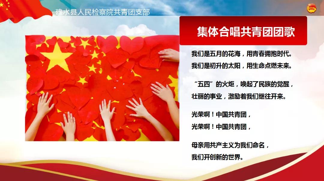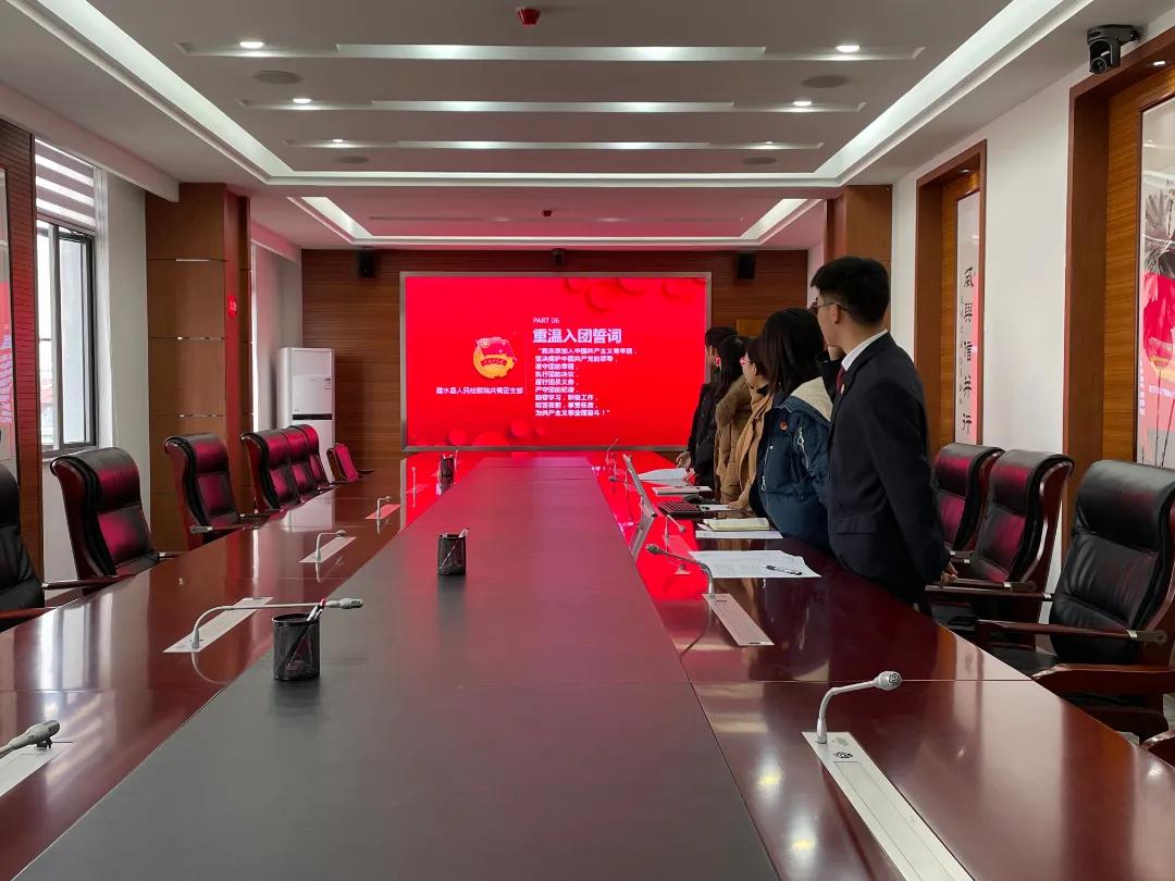 所有成员庄严肃立,用唱响团歌的方式展现出团员青年奋发进取的精神面貌,会议由此拉开序幕。