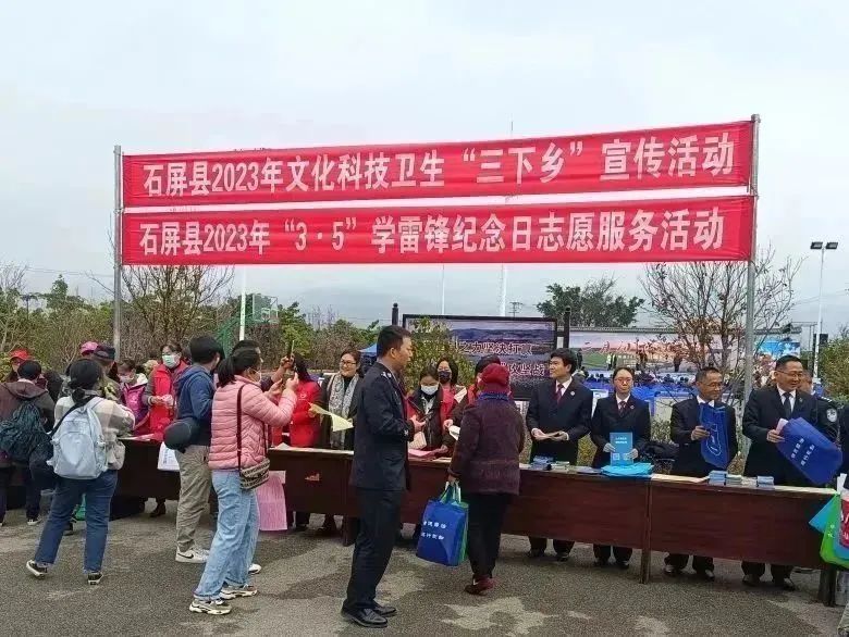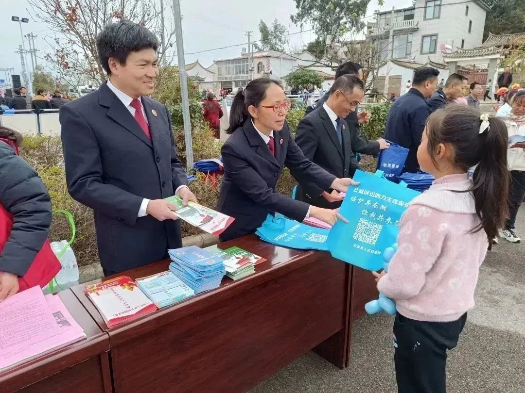 公益诉讼进农村,提高群众保护公益意识。3月4日,石屏县人民检察院副检察长卢永康带队参加在异龙镇豆地湾村举行的石屏县2023年文化科技卫生“三下乡”集中示范活动。采取现场发放宣传材料、购物袋,设立法律咨询台、摆放宣传展板等方式向群众广泛宣传公益诉讼制度、异龙湖保护治理、违法占用耕地建房等需承担的法律后果等法律政策规定,引导沿湖群众提高保护环境、保护异龙湖的思想自觉和行动自觉,让广大群众自觉参与到保护环境等社会公共利益中来。