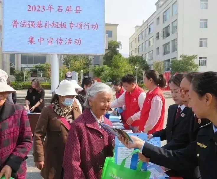 公益诉讼进社区,扩大人民群众对公益诉讼的知晓度。利用3•15国际消费者权益日,在石屏县法治广场结合普法强基补短板专项开展宣传。通过设置法律咨询点、悬挂横幅、发放宣传资料等方式,围绕消费者权益保护、妇女权益保护等内容向群众广泛宣传相关法律法规,现场答疑解惑,引导群众通过法律途径维护自身合法权益。同时,通过宣传检察机关在保护环境方面的职能作用,鼓励群众积极提供公益诉讼案件线索。此次活动共发放法治宣传资料200余份,接受相关法律咨询3人次。