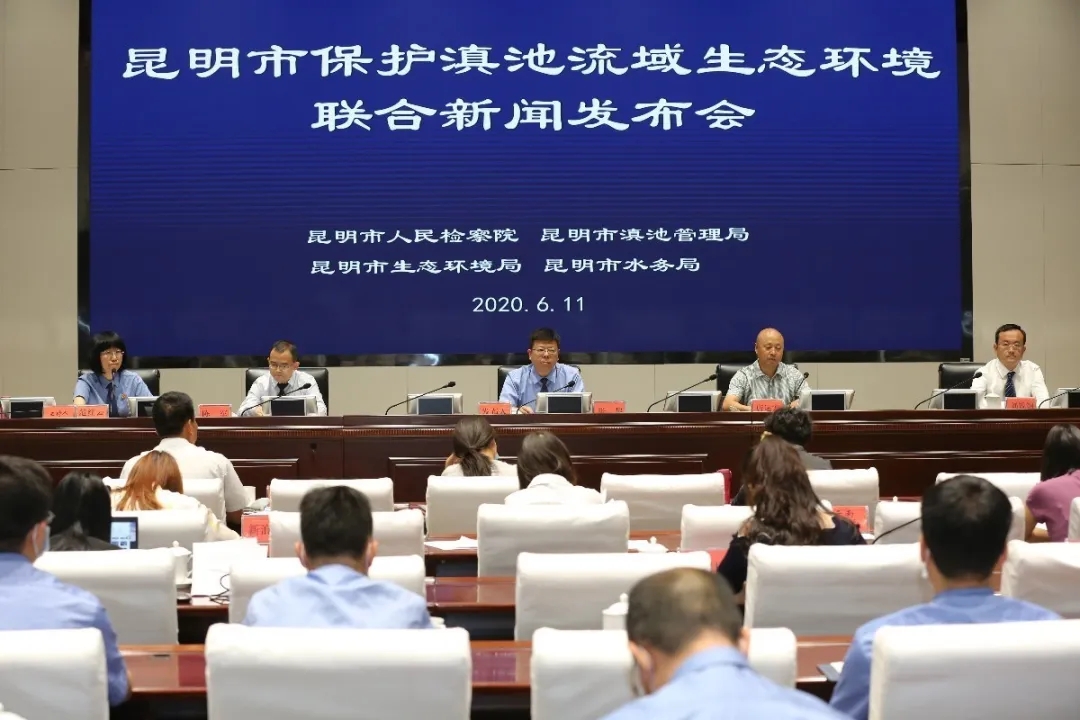 6月11日,昆明市检察机关与行政机关携手,召开保护滇池流域生态环境联合新闻发布会,昆明市检察院、市滇池管理局、市生态环境局、市水务局四部门共同向媒体通报了滇池流域生态保护的相关情况。