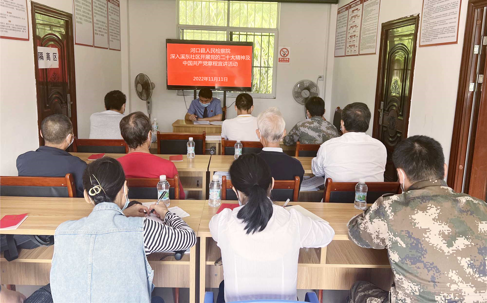 为深入学习宣传贯彻党的二十大精神,让党的二十大精神走进基层,走进群众。2022年11月11日,河口县人民检察院党组书记、检察长倪亚萍,党组成员、副检察长杨方伦,党组成员、政治部主任杨晶3人分别到挂联的基层党支部和挂钩包保的现代化边境小康村,开展党的二十大精神和新修订的《中国共产党章程》宣讲活动,将党的二十大精神送到党员群众“家门口365玩球安全吗_365万博首页_365审核要多久