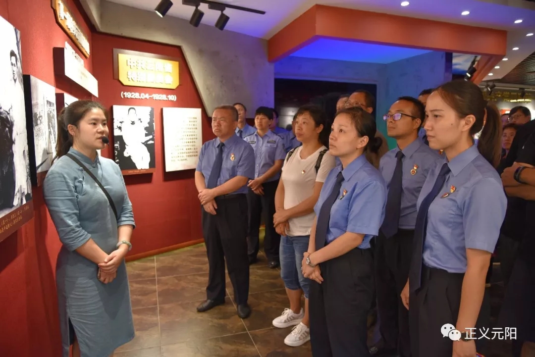 怀着无比崇敬的心情,在解说员的带领下,党员干警们参观了游道上的历史丰碑、大型浮雕,走进了茅草屋、革命历史陈列室,在鲜红的党旗面前,集体重温了《入党誓词》。