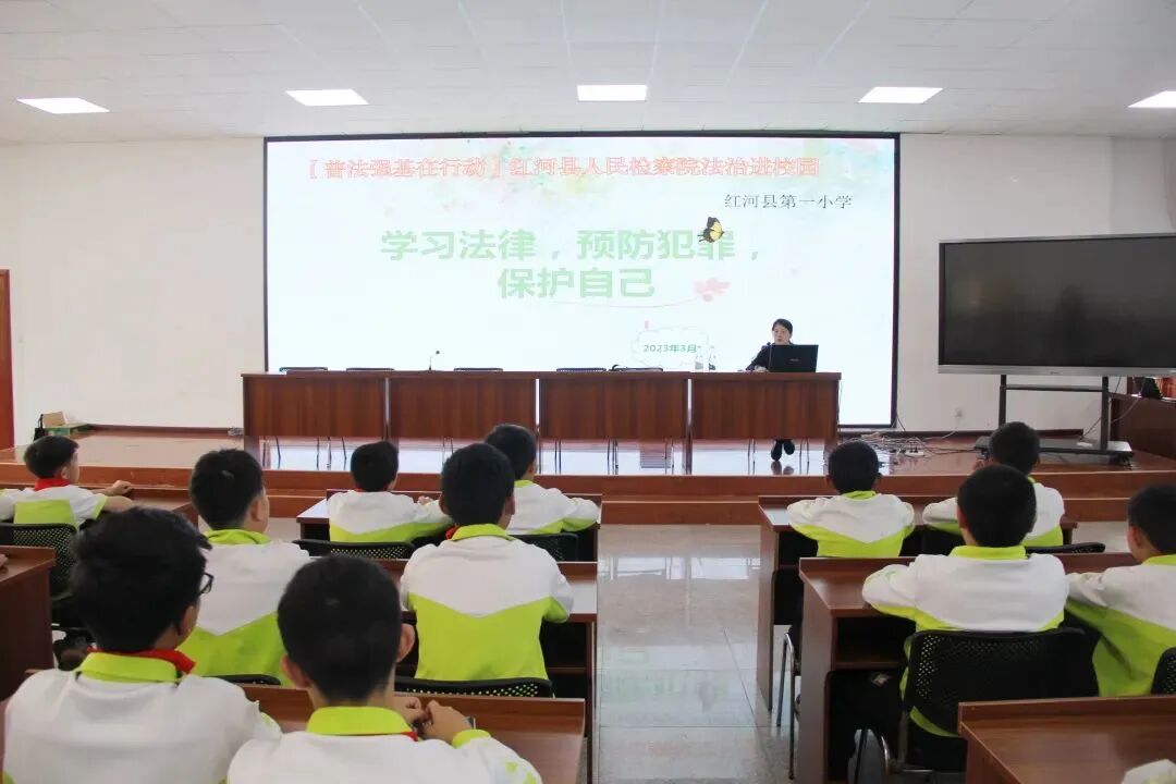 为进一步提升未成年人法治意识和自我保护意识,预防未成年人犯罪,在校园内正气树新风,红河州检察机关进入校园,从法律知识、预防犯罪、校园安全和自我保护等多方面内容,结合实际案例,为学生们带来一堂堂别开生面的法治教育课堂。