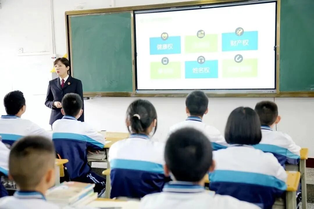 近日,第二检察部主任李晓琪到西山民族中学以“自护教育——成长宝典”为主题,为初一同学讲授法治课。