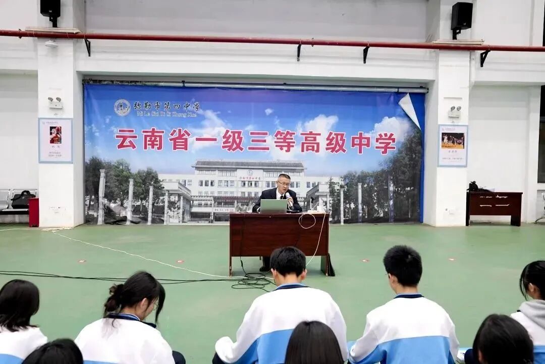 副检察长李有双到弥勒市第四中学以“预防校园欺凌”为主题为高一1000余名同学讲授法治课程。