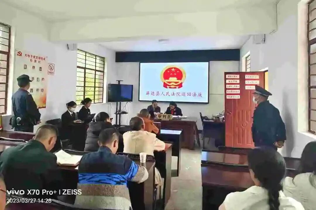 屏边县人民检察院联合屏边县人民法院深入大份子村委会现场开庭、现场普法,以人民群众喜闻乐见的形式让法治春风吹进千家万户。