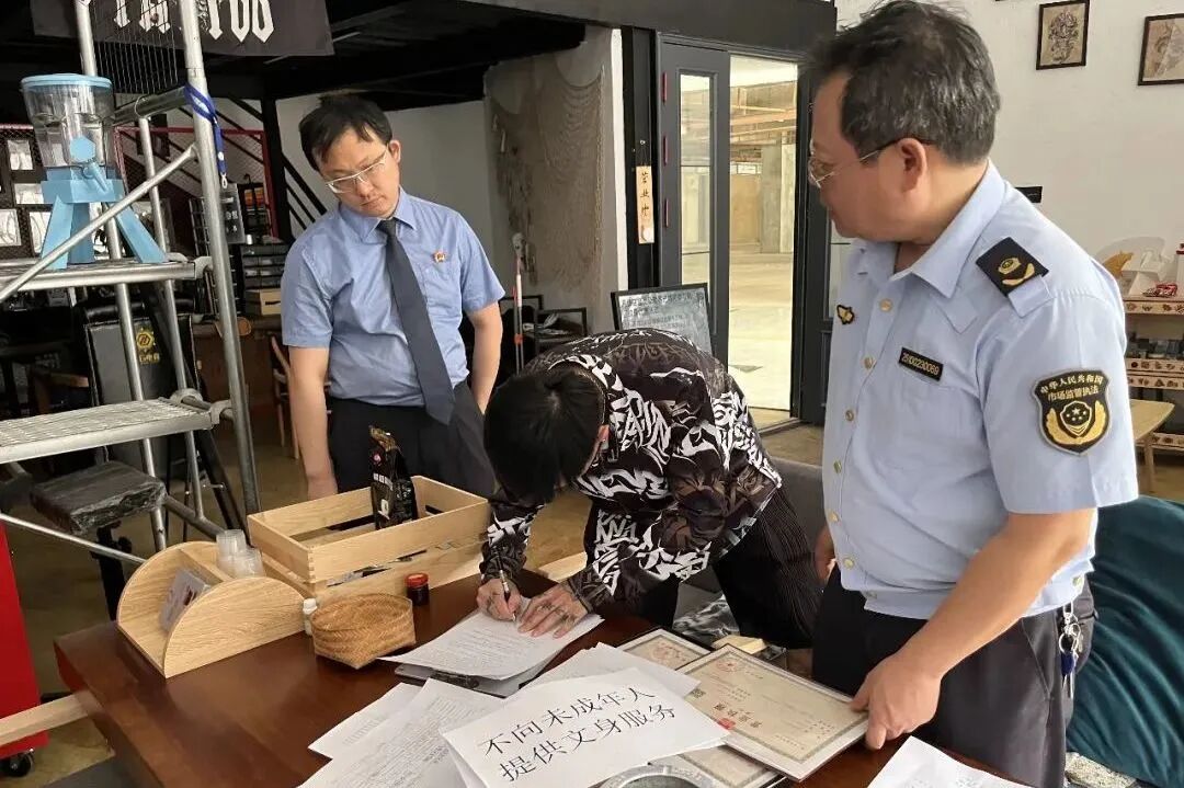 此次专项行动主要以排查市场主体是否依法取得营业执照、是否接纳未成年人文身、是否在显着位置张贴“未成年人禁止文身”等相关告知标语、经营场所卫生环境是否达标等为切入点进行排查。